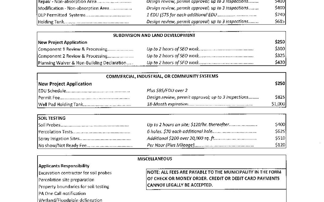 Sewage Enforcement Fee Schedule